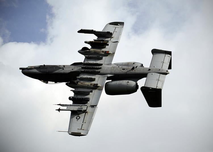 An A-10 Thunderbolt II does a show of force maneuver after locating a simulated downed pilot during RED FLAG-Alaska 13-3, Aug. 22, 2013, at Eielson Air Force Base, Alaska. Two A-10s defended the pilotÕs position until members of the 210th Rescue Squadron could rescue him. The A-10 is assigned to the 163rd Fighter Squadron, Indiana Air National Guard, Ft. Wayne, Ind. (U.S. Air Force photo/Senior Airman Shawn Nickel)