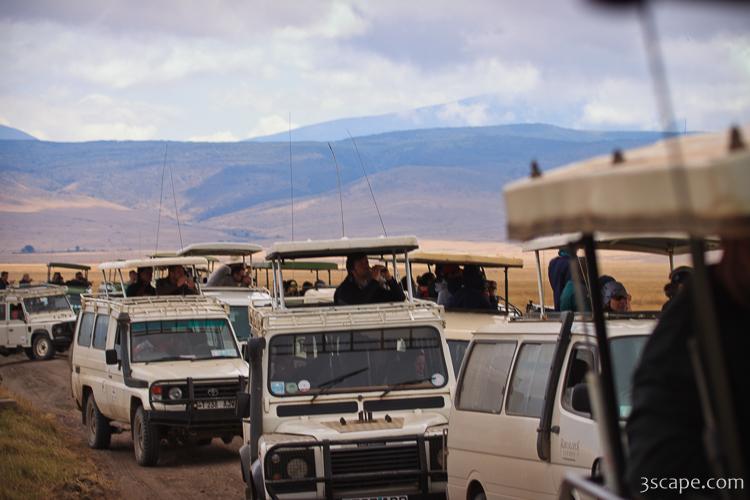 Picture of A huge throng of safari vehicles showed up to watch the feeding in gallery Ngorongoro Crater (part 2).
