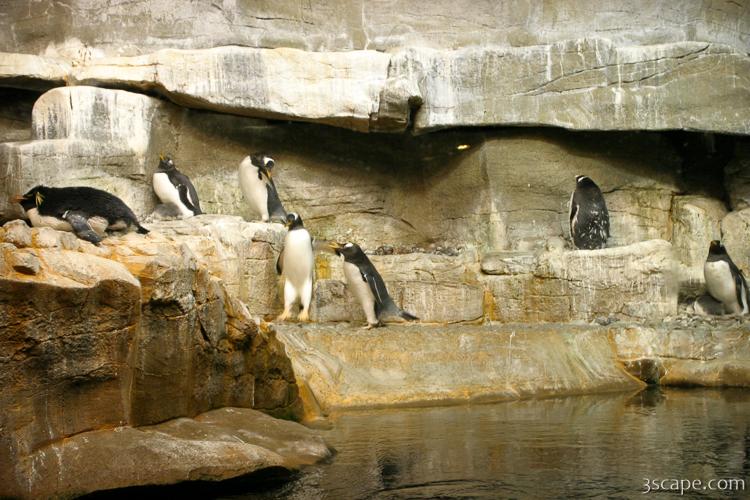 Picture of Active Gentoo Penguins in gallery John G. Shedd Aquarium.