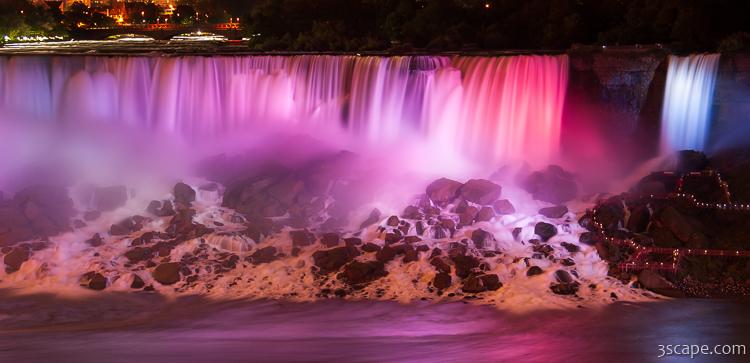 The American Falls is the second-largest of the three waterfalls that together are known as Niagara Falls on the Niagara River along the Canada-U.S. border. Unlike the much larger Horseshoe Falls, of which two-thirds is located in Ontario, Canada and one-third in the U.S. state of New York, the American Falls is entirely within the United States.