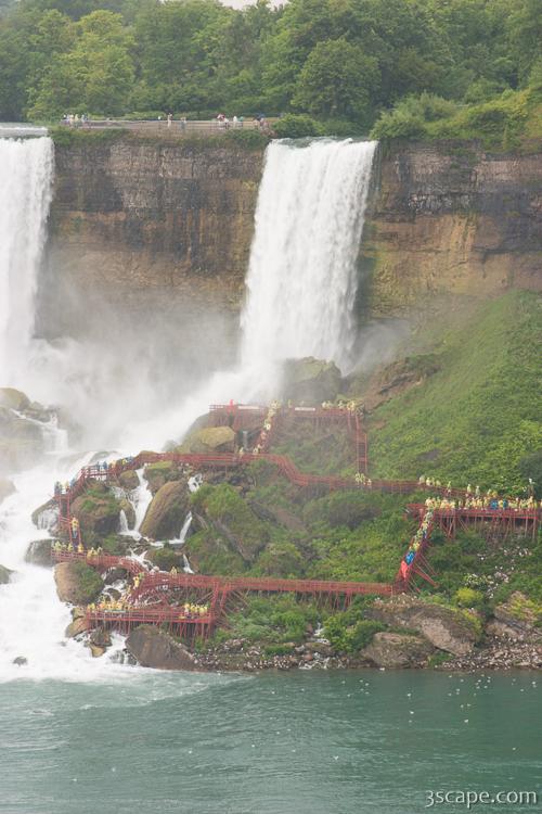 Picture of American Falls and tourists walking to the Cave of the Winds in gallery Niagara Falls.
