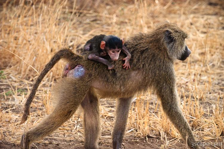 Picture of Baby baboon riding piggyback with mom in gallery Tarangire National Park (part 2).