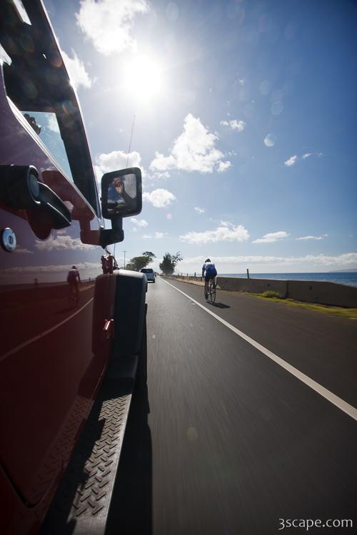 Picture of Bicycle rider on Maui highway in gallery Around Maui.