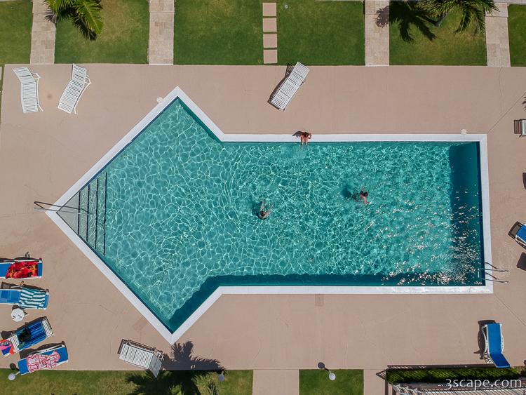 Drone aerial view of the condo pool.