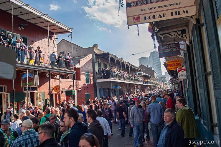 Picture of Bourbon Street filling up with people in gallery New Orleans Mardi Gras 2007 - Around Town.