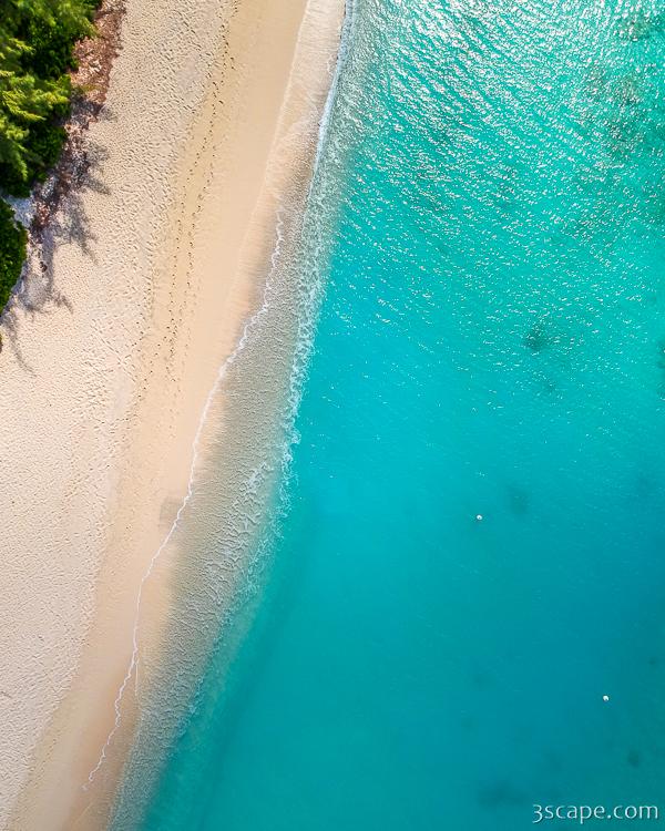 Top down view of the beach and waters around Cemetery Beach near Seven Mile Beach.