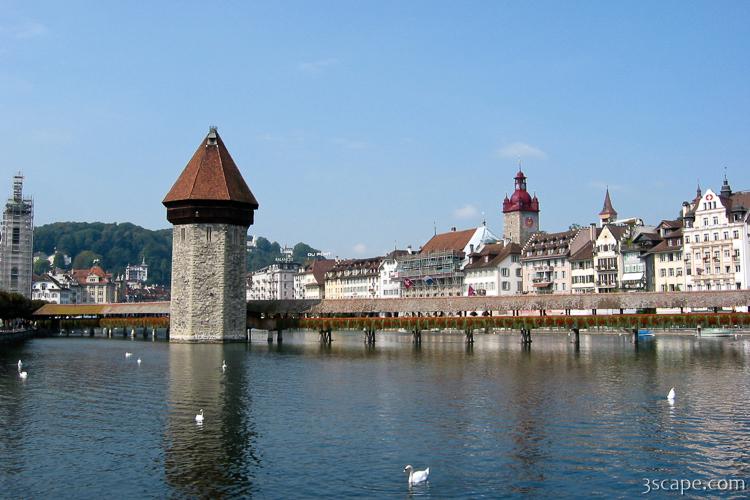Picture of Chapel Bridge and Water Tower on Reuss River in gallery Luzern (Lucerne).