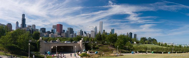 Panoramic view of Chicago and Grant Park from the museum campus area