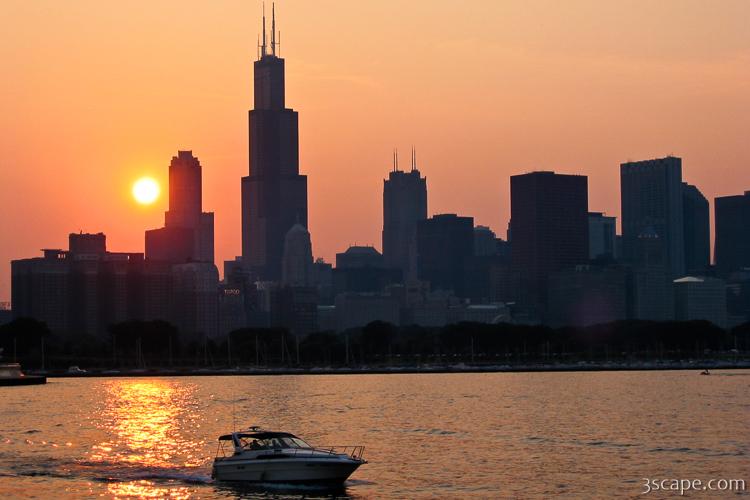 Picture of Chicago Skyline with boat in gallery Chicago Scenes.