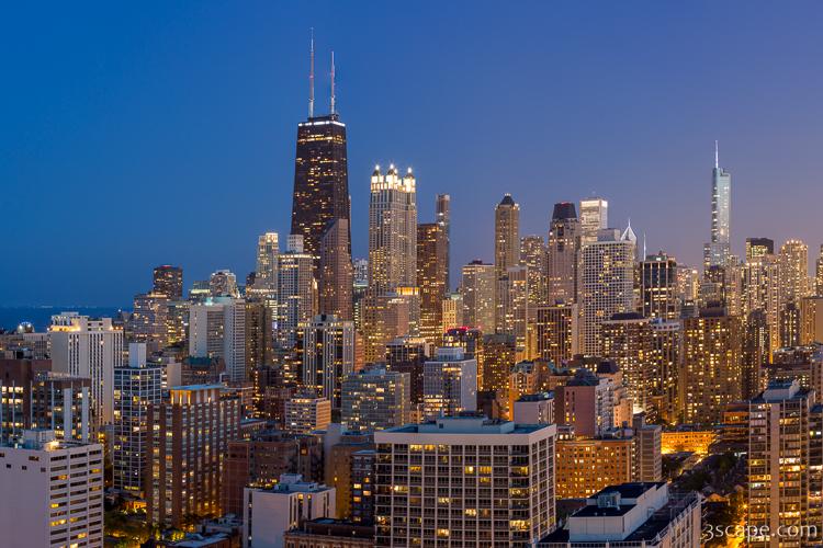 Chicago's beautiful skyline featuring the John Hancock Building, Streeterville, Gold Coast, and Uptown neighborhoods.