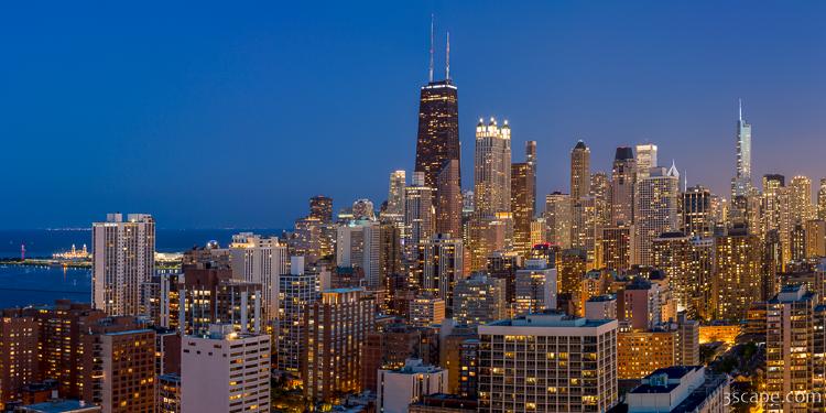Chicago's beautiful skyline featuring the John Hancock Building, Streeterville and Uptown neighborhoods. Wide 2:1 panoramic version of another similar 2:3 image.