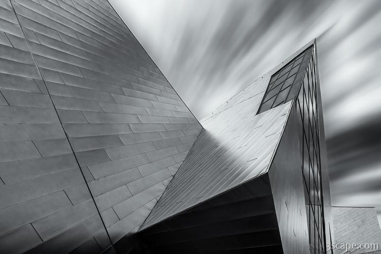 Long exposure image with smooth moving clouds over the Shops at Crystals, Aria, Las Vegas, Nevada.