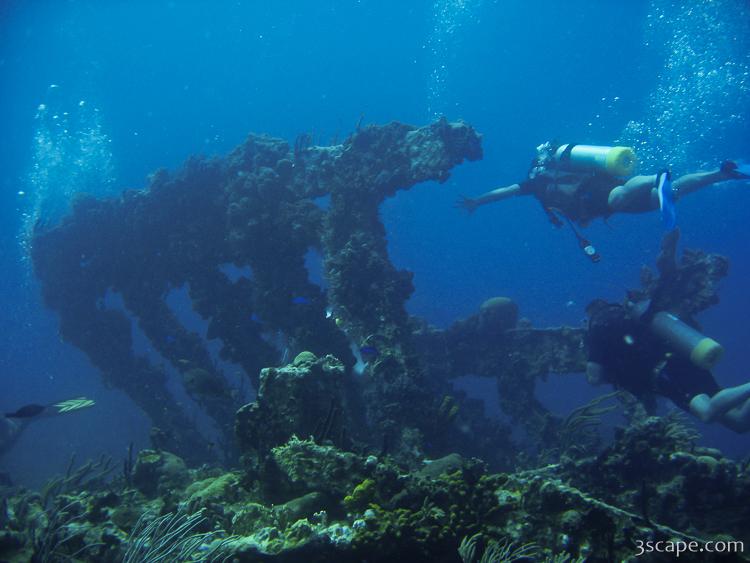 Picture of Divers around the wreck in gallery Scuba Diving The Rhone (Salt Island).