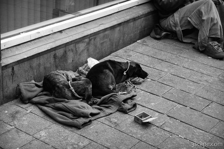 Picture of Dogs begging for some coin in gallery Amsterdam (Part 1).