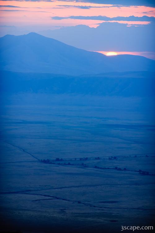 Sunset barely illuminating the crater floor, 2000 feet below our lodge.