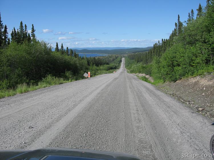 Picture of Endless gravel road with view of Manicouagan Reservoir in gallery Trans-Labrador Highway - Manic 5 to Goose Bay.