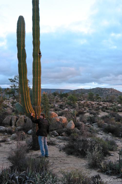 Picture of Falke checking out a cactus in gallery Ensenada to Catavina.
