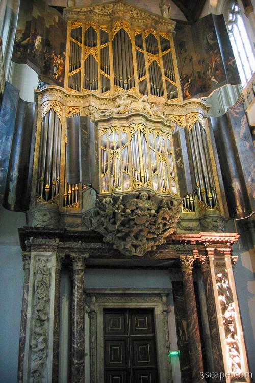 Picture of Famous pipe organ at New Church Inside the New Church (Nieuwe Kerk) in gallery Amsterdam (Part 1).