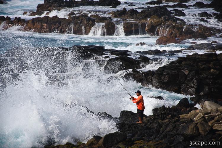 Picture of Fisherman and powerful surf near Honolua in gallery Around Maui.