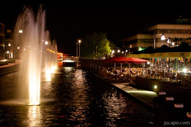 Picture of Fountains and riverside restaurants in gallery Helmond.