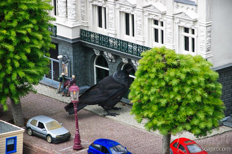 Picture of Giant crow attacking a store front in gallery Den Haag (The Hague).