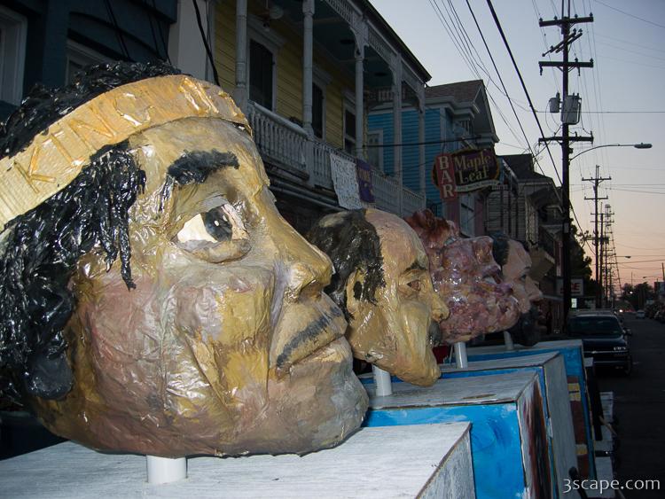 Picture of Giant heads waiting for the parade in gallery New Orleans Mardi Gras 2007 - Parades.