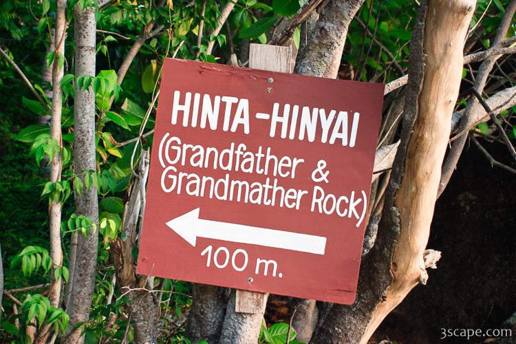Picture of Go here to see Grandfather and Grandmother rocks - don't let this sign fool you in gallery Koh Samui.