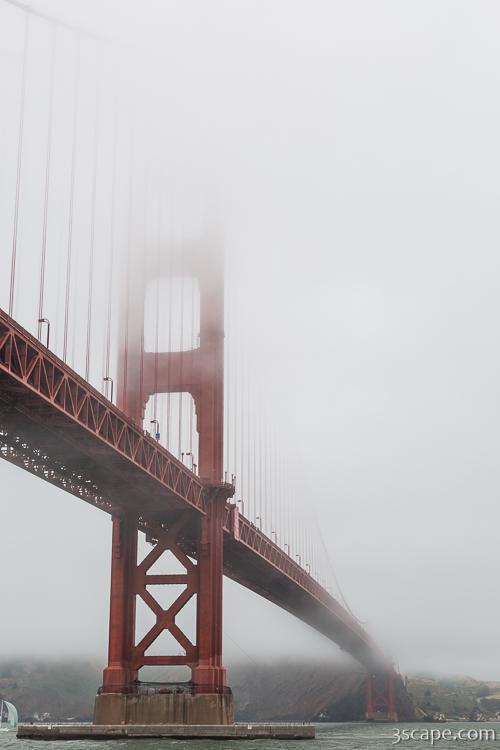 The Golden Gate Bridge is probably the most photographed bridge in the world. Here, it's largely shrouded in the typical thick fog that hovers in and around the bay and central coast of California.