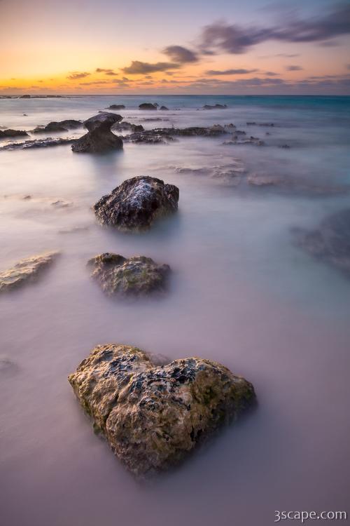 Sunrise in Riviera Maya Mexico, and an interesting piece of coral rock shaped like a heart. Perfect timing for Valentine's Day.