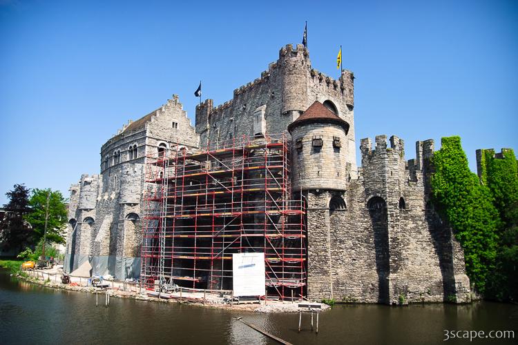 Picture of Het Gravensteen - Castle of the Counts - under restoration in gallery Ghent.
