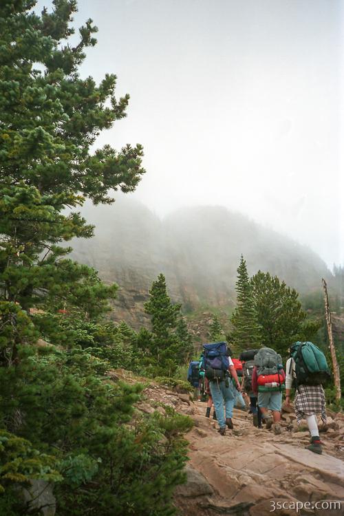 Picture of Hikers on a foggy day in gallery Zlaz 1993 - Scout Trip.