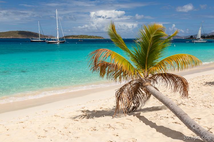 Honeymoon beach is a beautiful, though not easily accessible beach on St. John in the US Virgin Islands. To get to this secluded beach, you have to either come by boat or walk along the Lind Point Trail from Cruz Bay. This beach is one of the few that has surviving palm trees after twin hurricanes in 2017.