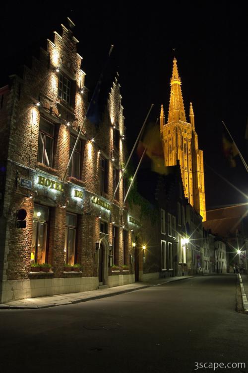 Picture of Hotel De Castillion, Church of Our Lady in gallery Brugge at Night.