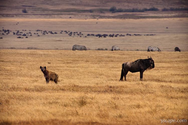 Picture of Hyena and Wildebeest, living side by side in gallery Ngorongoro Crater (part 1).
