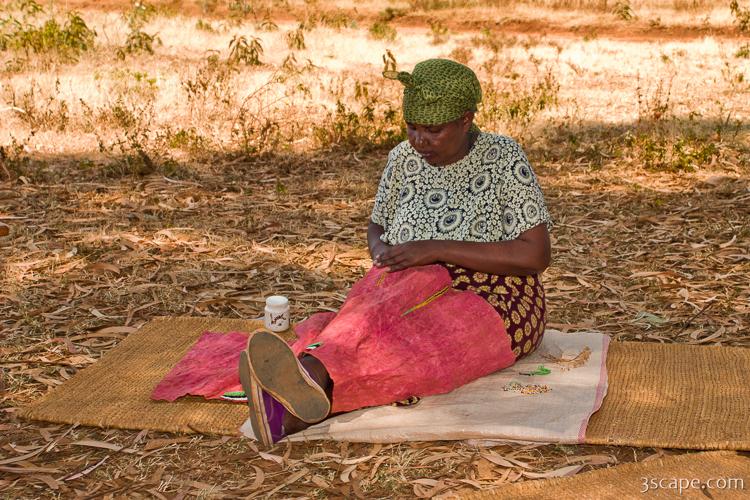 Picture of Iraqw woman putting beads on a traditional wedding skirt in gallery Ngorongoro Crater (part 1).