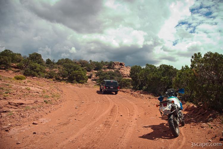 Picture of Jeep, KLR 650 on Sand Flats Road in gallery Sand Flats Road, Castle Valley, Chicken Corners Trail.