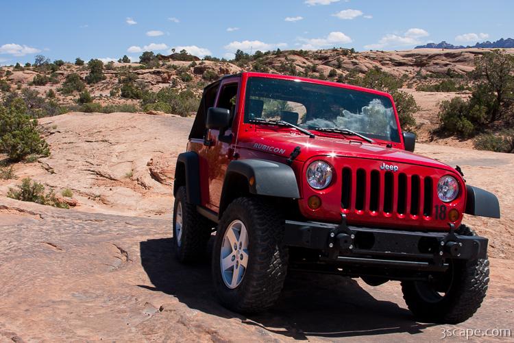 Picture of Jeep Rubicon on Fins N Things slickrock 4x4 trail in gallery Top of the World trail.