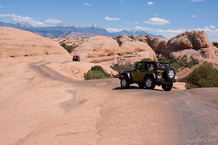 Picture of Jeep Rubicon on Little Lion Back slickrock 4x4 trail in gallery Top of the World trail.