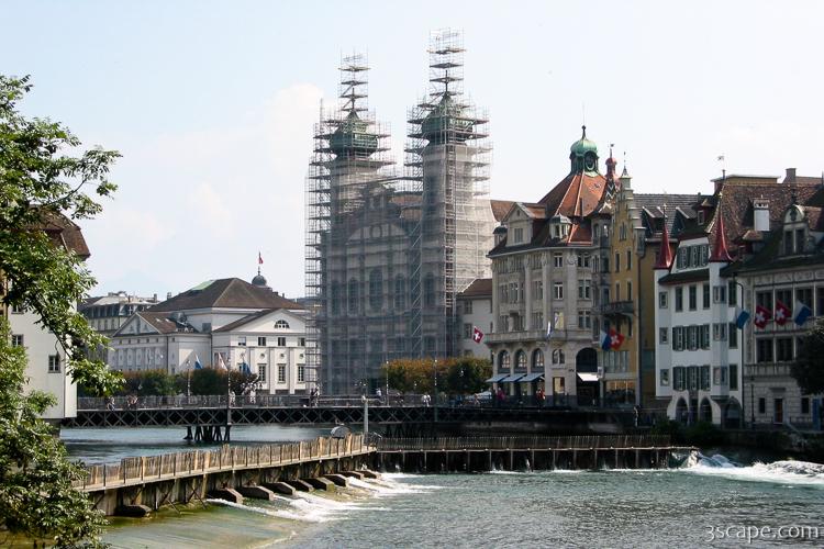 Picture of Jezuit Church under repairs in gallery Luzern (Lucerne).
