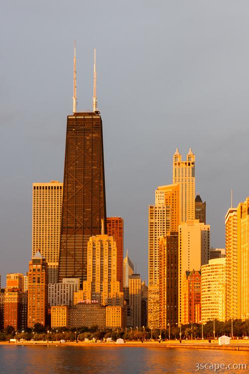 The John Hancock Center at 875 North Michigan Avenue in the Streeterville area of Chicago, Illinois, is a 100-story, 1,127-foot tall skyscraper, constructed under the supervision of Skidmore, Owings and Merrill, with chief designer Bruce Graham and structural engineer Fazlur Khan. When the building topped out on May 6, 1968, it was the tallest building in the world outside New York City. It is currently the fourth-tallest building in Chicago and the sixth-tallest in the United States, after the Willis Tower, the Empire State Building, the Bank of America Tower, the Trump Tower Chicago, and the Aon Center. When measured to the top of its antenna masts, it stands at 1,506 feet. The building is home to offices and restaurants, as well as about 700 condominiums and contains the third highest residence (above adjacent ground level) in the world, after the Trump Tower (also in Chicago), and the Burj Khalifa (in Dubai). The building was named for John Hancock Mutual Life Insurance Company, a developer and original tenant of the building.