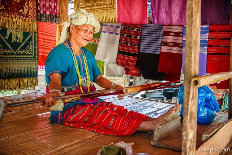 Picture of Karen woman weaving in gallery Chiang Mai.