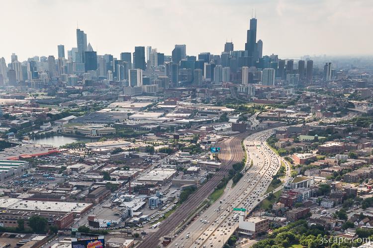Picture of Kennedy Expressway and Chicago Skyline in gallery Chicago Aerial Photography.