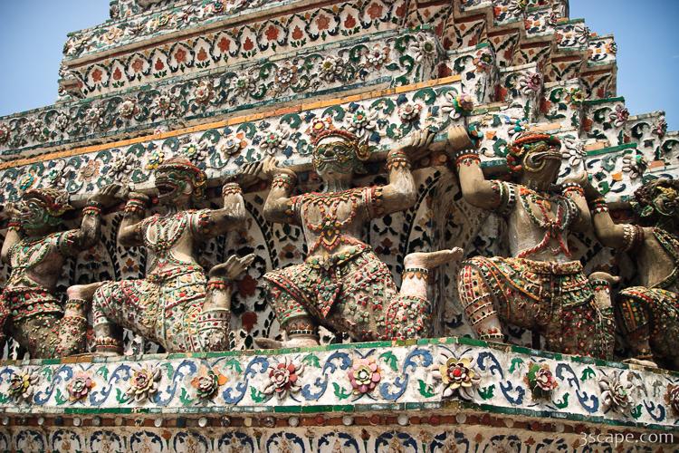 Picture of Khon figures holding up Wat Arun in gallery Bangkok.