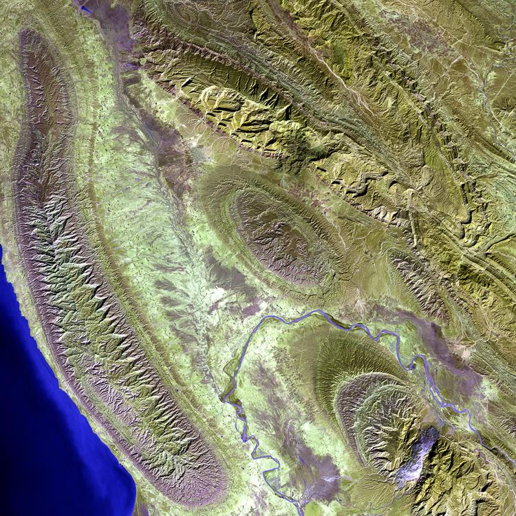 The Mand River and the small town of Konari nestle in the Zagros Mountains in western Iran.