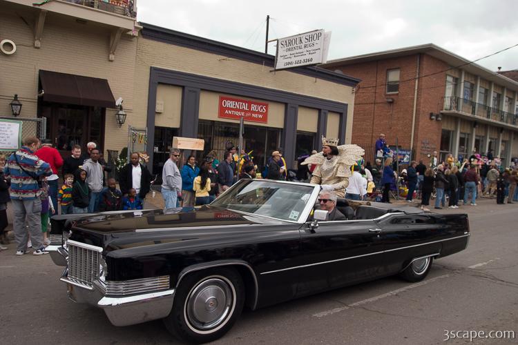 Picture of Krewe of Iris King in an old caddy in gallery New Orleans Mardi Gras 2007 - Parades.