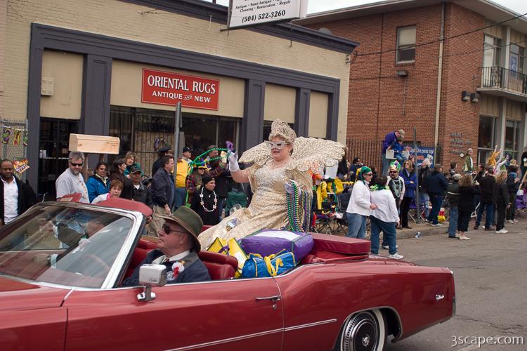 Picture of Krewe of Iris Queen in an old caddy in gallery New Orleans Mardi Gras 2007 - Parades.