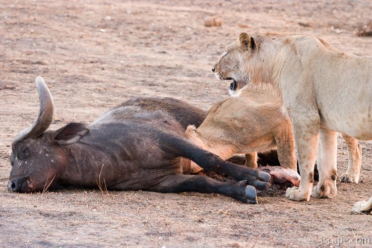 Picture of Lions munching on a freshly killed cape buffalo in gallery Tarangire National Park (part 1).