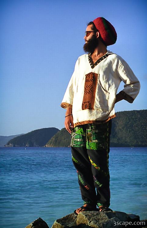 Picture of Local steel drum player, Cinnamon Bay in gallery St. John (1999 film scans).