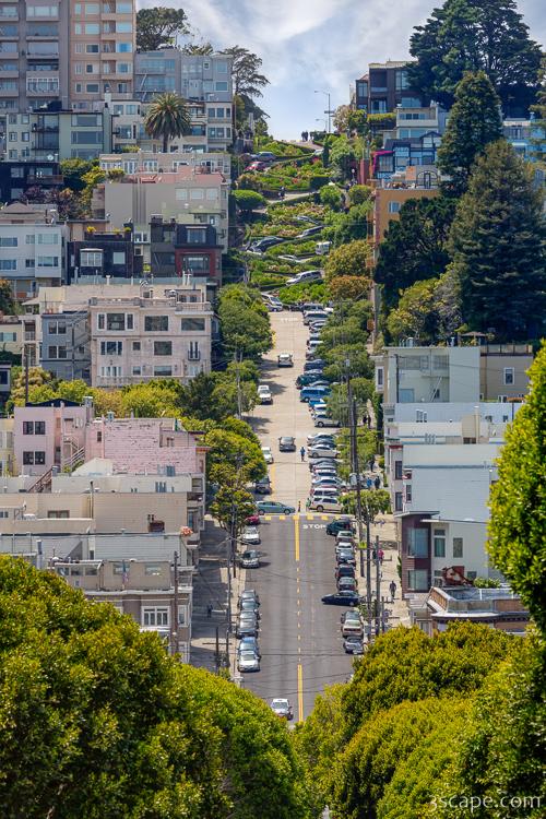 Lombard Street - known as the world's "Crookedest Street", shot from a distance near Telegraph Hill.