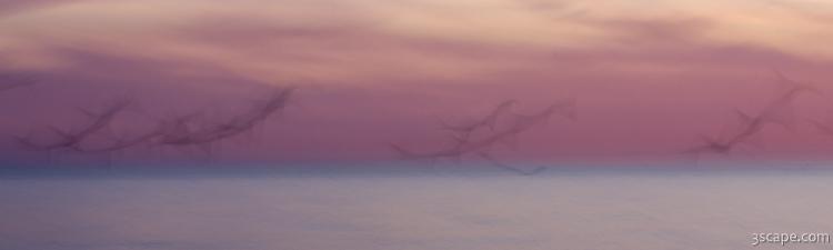 Picture of Long Exposure Flying Birds at Beach Panoramic in gallery Wide Panoramic Images.